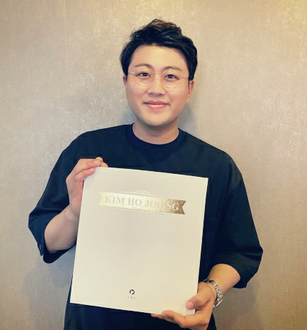공개된 사진 속에는 화보집을 들고 인증샷을 찍는 김호중의 모습이 담겼어요.