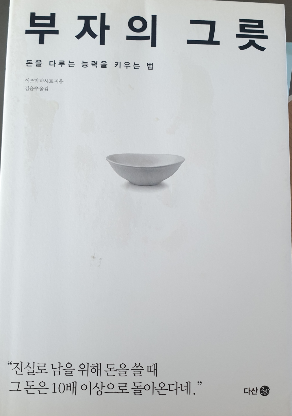 이 말은 자기 자신의 그릇이 커져야 그에 맞는 큰돈이 들어온다는 뜻이다. 즉, 그릇이 크지 않다면 어쩌다 우연히 큰돈이 들어왔다 해도 언젠가 모두 나가버린다.