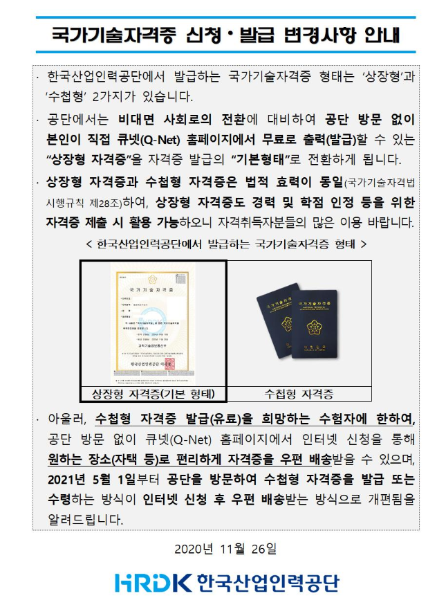 이젠 국가자격취득후, 불필요하게 방문하거나, 우편으로 받은 번거로움은 없어질 것 같아요.
