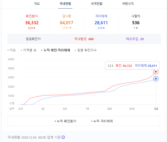 해외유입 확진자는 29명이지만 대부분 공항 또는 임시생활시설, 거주지에서 확진되었기에 사회로 확산은 된 것 같지 않고요. 사망자는 7명 늘어 누적 536명로 국내 평균 치명률은 1.48%입니다.