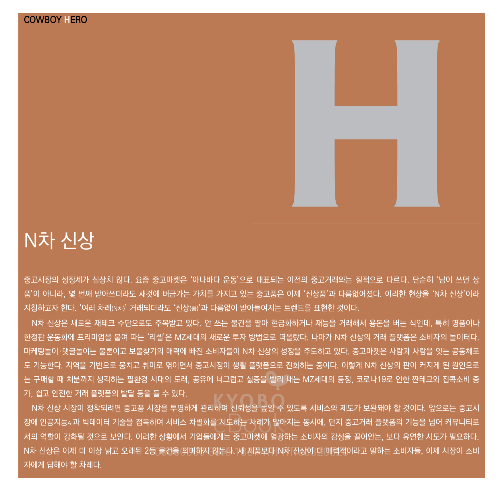 중고시장의 성장세가 심상치 않다. 요즘 중고마켓은 '아나바다 운동'으로 대표되는 이전의 중고거래와는 질적으로 다르다. 단순히 '남이 쓰던 상품'이 아니라, 몇 번째 받아쓰더라도 새것에 버금가는 가치를 가지고 있는 중고품은 이제 '신상품과 다름없어졌다. 이러한 현상을 'N차 신상' 이라 지칭하고자 한다. 여러 차례(N차) 거래되더라도 '신상품)'과 다름없이 받아들여지는 트렌드를 표현한 것이다.