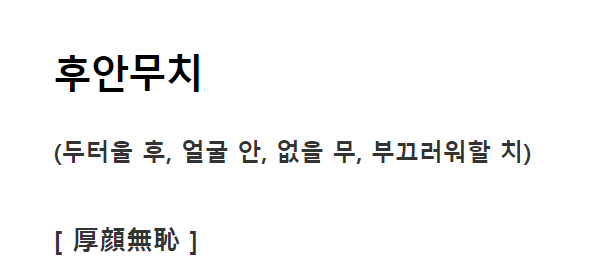 (두터울 후, 얼굴 안, 없을 무, 부끄러워할 치)