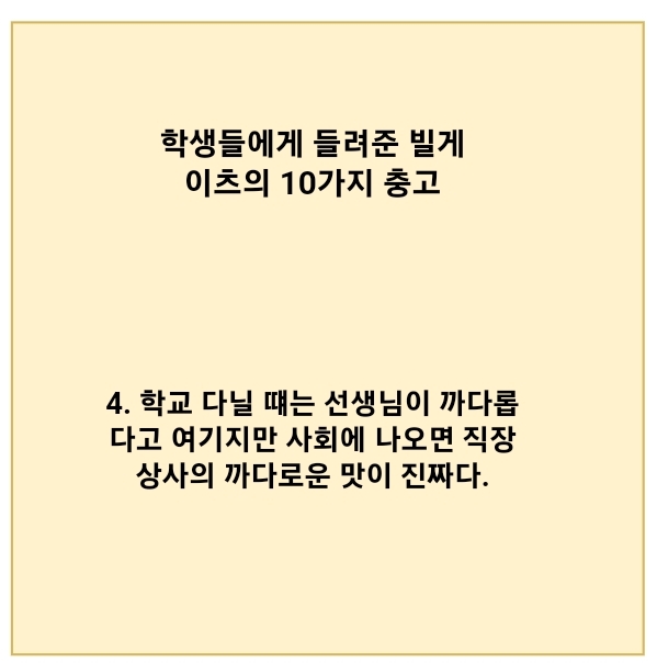 4. 학교 다닐 떄는 선생님이 까다롭다고 여기지만 사회에 나오면 직장상사의 까다로운 맛이 진짜다.