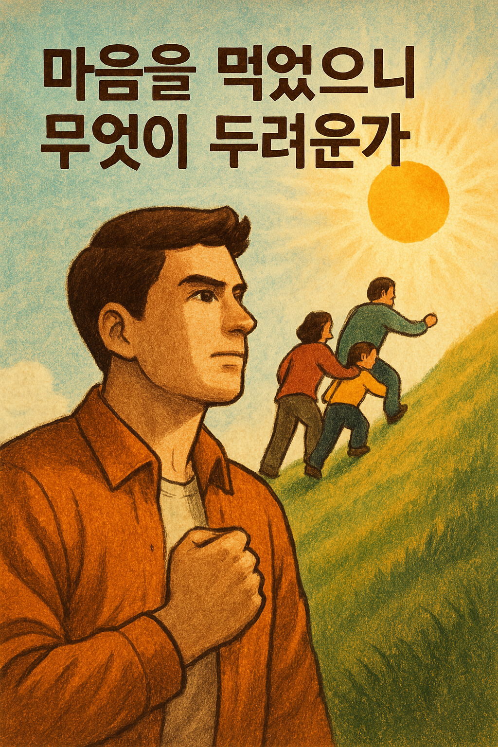 마음을 먹었으니 무엇이 두려운가? 앞으로 전진을 하는 것이다. 이 세상에 사는 동안 마땅한 사명을 감당하며 살아가기로 했다. 나를 생각하고 이웃을 생각하고 가족을 생각하고 … 등등 사람과 함께 살아가는 세상에서 나만 잘날 수 없다. 서로 기대며 더 높은 곳으로 올라 갈 수 있다.