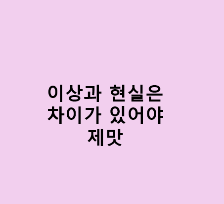 "이상과 현실은 차이가 있어야 제맛"이라는 표현은 이상적인 상태와 실제 현실 사이에 일정한 간극이나 차이가 존재할 때, 그 차이가 오히려 상황을 더욱 흥미롭고 의미 있게 만든다는 의미를 담고 있습니다. 이 구절은 완벽함이나 이상적인 상태가 항상 현실에 부합하지는 않지만, 그 차이로 인해 삶이나 상황이 다채롭고 깊이 있게 느껴진다는 철학적 관점을 반영하고 있습니다.
